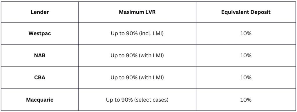 Westpac’s 2025 policy allows investment loans up to 90% LVR with LMI, showing how lenders reward strong financial profiles rather than punishing smaller deposits.