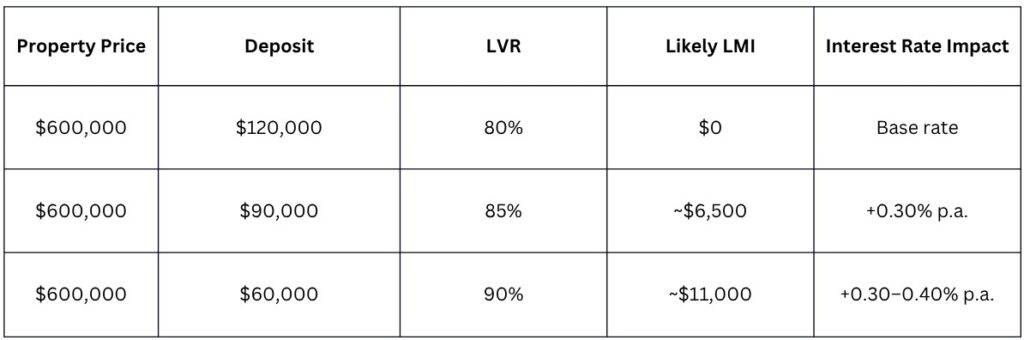 A higher LVR allows you to buy sooner, but usually attracts LMI costs and a small rate premium as compensation for the increased exposure.